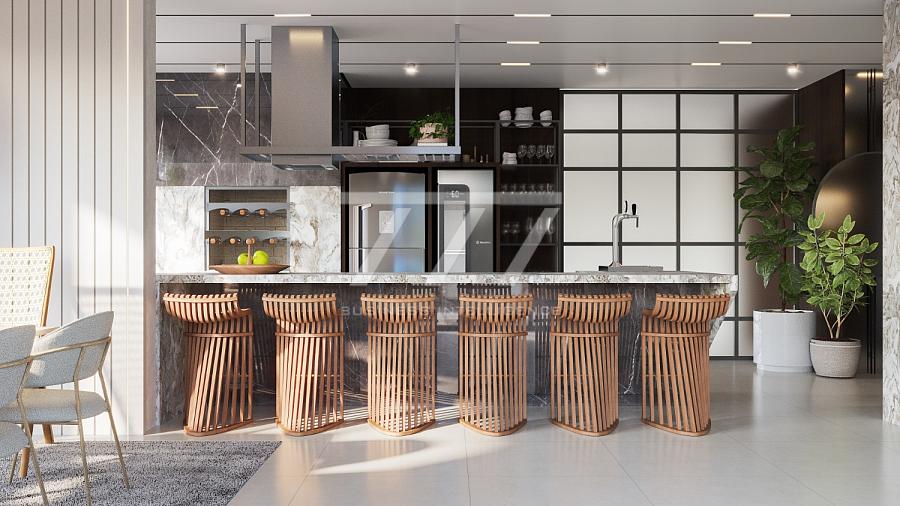 Todos os apartamentos contam com ampla sacada com churrasqueira a carvão, fechadura eletrônica, infraestrutura para automação residencial.