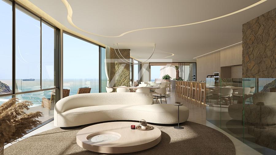 O Scenarium oferece plantas que variam de aproximadamente 189m² a mais de 600m² de área privativa, contemplando desde apartamentos tipo até coberturas duplex e mansões suspensas de frente para o mar. Todas as unidades contam com vista definitiva para o mar, plantas a partir de 3 suítes (sendo 1 master com closet e banheira de imersão), varanda com churrasqueira a carvão, amplos ambientes integrados, living espaçoso e até 5 vagas de garagem. Com entrepisos de pé-direito elevado de 3,06 m, o projeto alia sofisticação, amplitude e o máximo aproveitamento da paisagem litorânea.